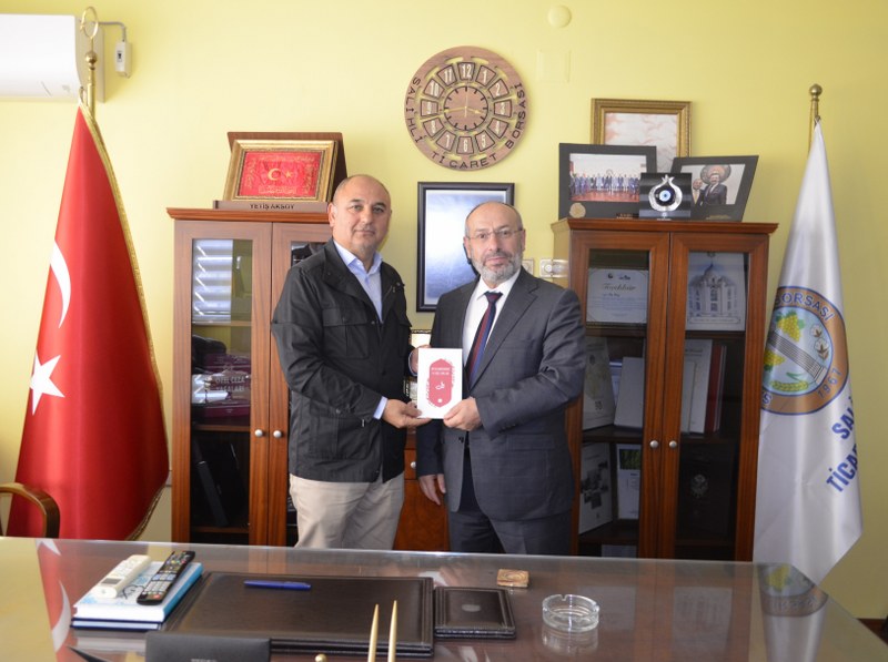 Salihli İlçe Müftüsü Sayın Ali Çebi, Salihli Ticaret Borsamız Yönetim Kurulu Başkanı Yetiş Aksoy'u makamında ziyaret etti.