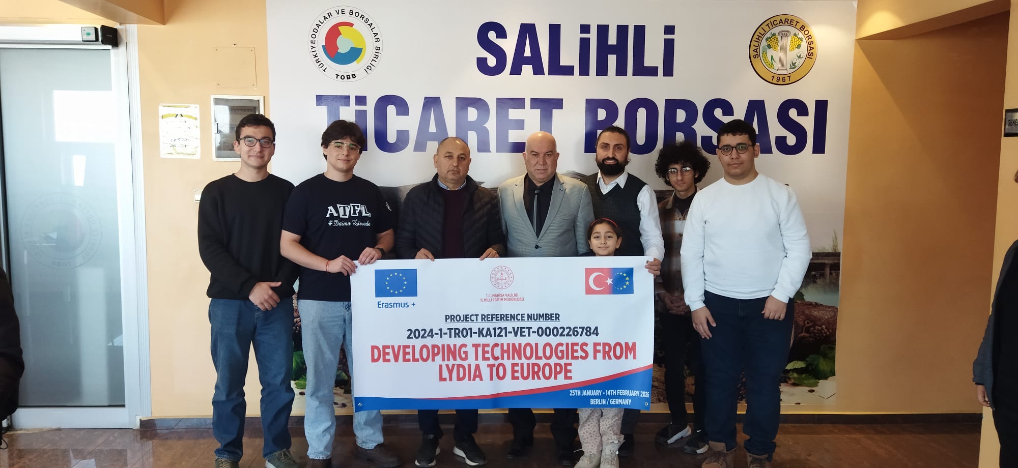 Salihli Ticaret Borsası Yönetim Kurulu Başkanı Yetiş Aksoy, Salihli Borsa İstanbul Mesleki ve Teknik Anadolu Lisesi okul yetkililerini ve projede görev alarak Almanya’ya gidecek olan öğrenciler Salihli Ticaret Borsası hizmet binasında karşıladı.